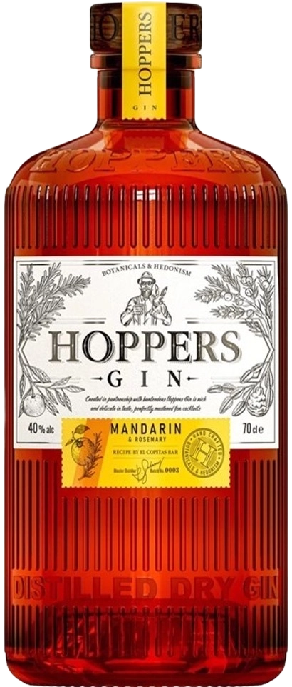Продукт нового поколения для нашего рынка: качественно упакованный, созданный по оригинальной европейской технологии экспертной командой с помощью известных профессионалов барной индустрии. Hoppers — полностью дистиллированный джин без разбавления спиртом, состоящий из натуральных ботаникалов. Многогранный, чистый аромат раскрывается "праздничными" оттенками спелого мандарина, пряностей и трав.